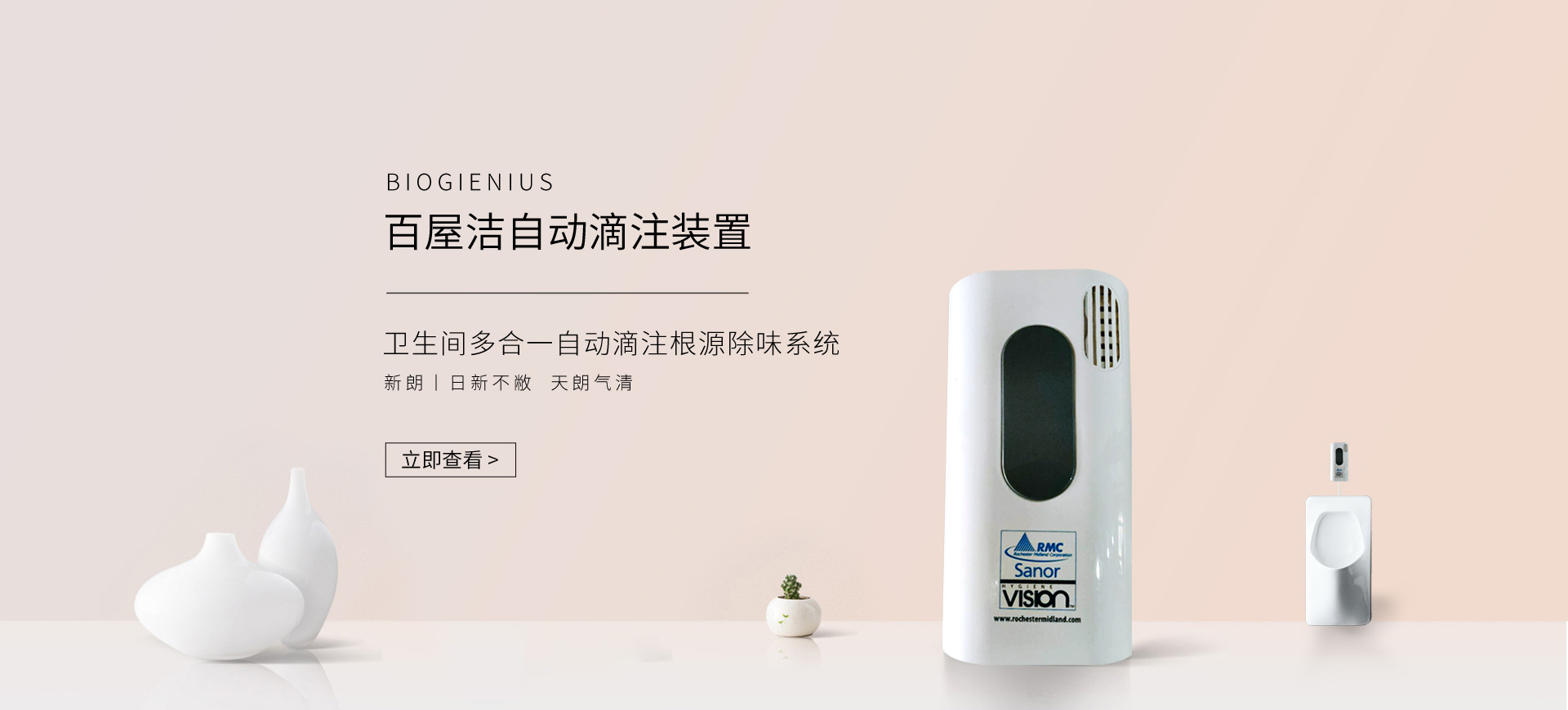 新朗環(huán)境自2015年起與美國具百年歷史的跨國企業(yè)RMC(Rochester Midland Corporation)合作, 進(jìn)口 RMC用于機(jī)械制造、交通運(yùn)輸、航天航空、石油化工、食品禽肉乳制品加工等工業(yè)生產(chǎn)制造行業(yè)的專業(yè)清洗、滅菌系列產(chǎn)品,以及酒店、CBD大廈、學(xué)校(包括幼稚園)、醫(yī)療機(jī)構(gòu)、百貨商場、養(yǎng)殖業(yè)、餐飲業(yè)等商用行業(yè)清潔、消毒系列產(chǎn)品,還有專用于各個行業(yè)單位“廁所革命”的公共衛(wèi)生間根源除味第5代SANOR?衛(wèi)生間自動滴管系統(tǒng)、第6代百屋潔SIOGIENIUS?電子控制衛(wèi)生間自動滴注系統(tǒng)等系列產(chǎn)品項目。